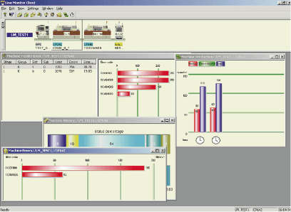 實(shí)時監(jiān)視器可隨時將生產(chǎn)狀況傳送到管理者。生產(chǎn)線監(jiān)視器可以在PC上表示從生產(chǎn)線的全體生產(chǎn)狀況到各個供料器情報為止的各項(xiàng)內(nèi)容。使用多文檔接口(MDI),可以同時進(jìn)行各條生產(chǎn)線和各個機(jī)器的監(jiān)視。