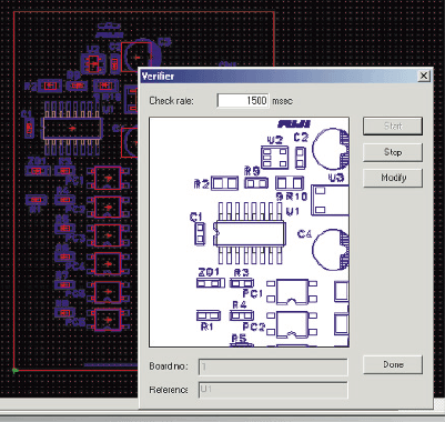 使用FujiFlexa后,可以進(jìn)一步提高對于離線方式作成的數(shù)據(jù)的信賴性。這是因?yàn)樵谝噪x線方式作成生產(chǎn)程序時,CAD數(shù)據(jù)、Gerber數(shù)據(jù)以及任務(wù)數(shù)據(jù)重合在一起被表示,由此可以進(jìn)行生產(chǎn)程序整合性的確認(rèn),從而在元件貼裝之前進(jìn)行錯誤的修正。